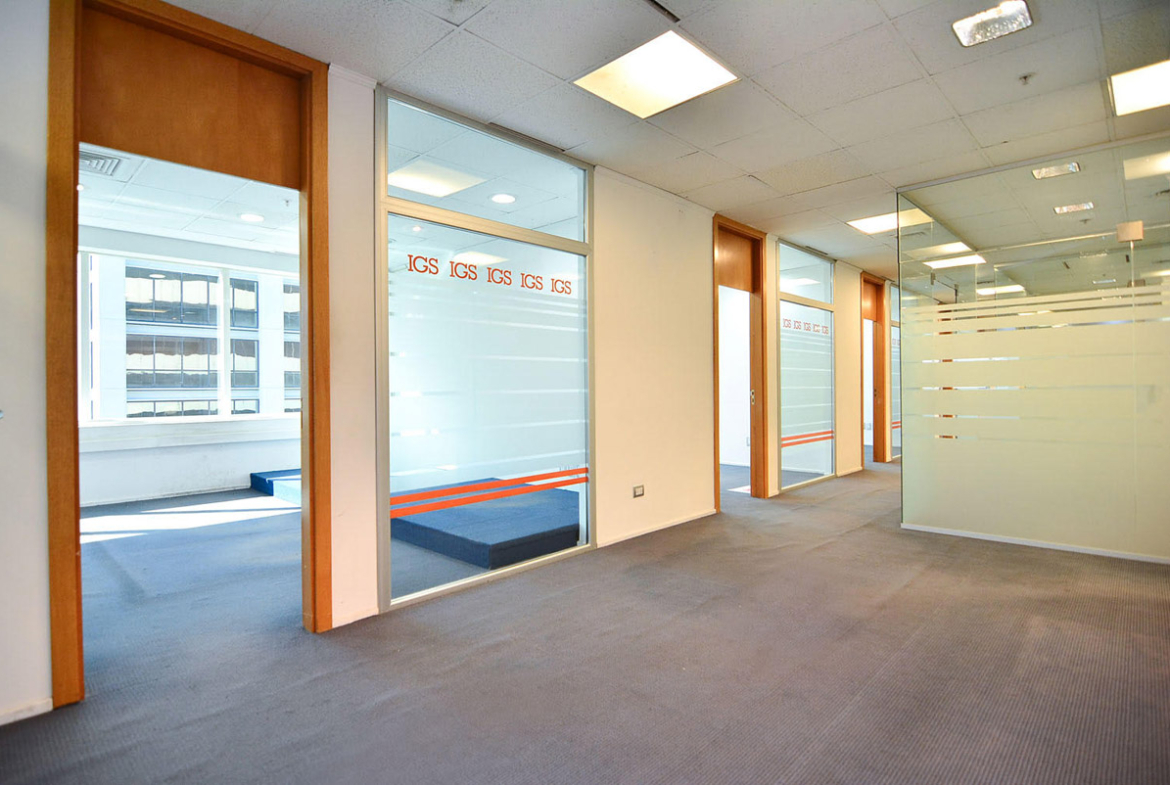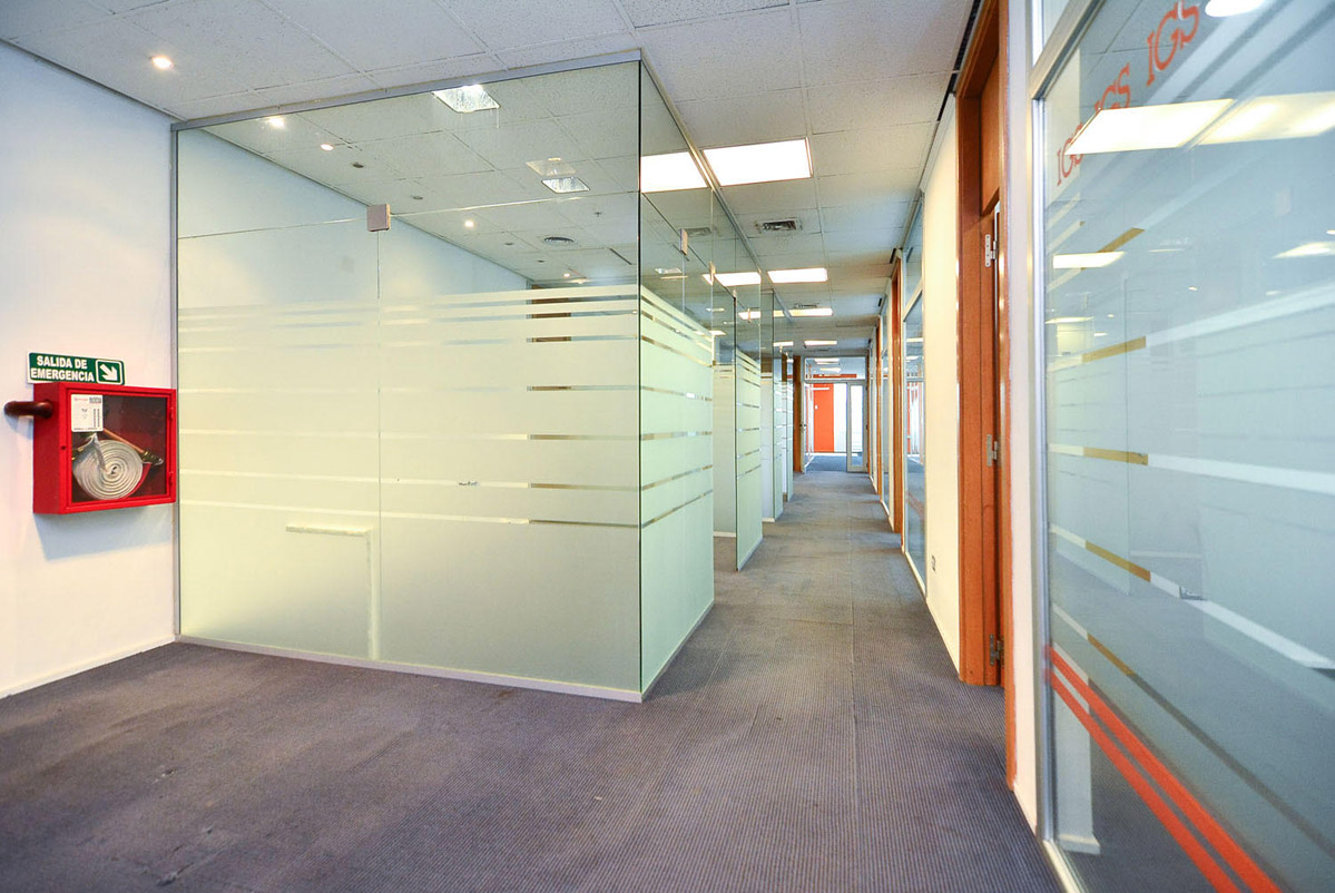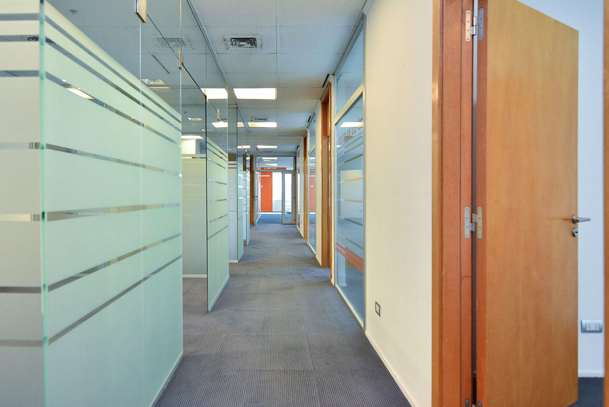 Las oficinas cuentan con recepción, área de trabajo, despachos, sala de reuniones, sector para alojar tecnología, piso técnico y alfombra técnica. También cuenta con cielorraso modular con luminaria embutida y/o adosada, baterías de baño H/M, cocina, y aire acondicionado por volumen de aire variable (VRV).